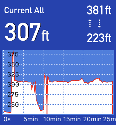 On LIVE recordings, and assuming you are currently receiving location updates, the BIG number shows your current altitude. The label changes to ‘Current Alt’ to let you know what’s being reported. You may occasionally see the ‘Current Alt’ change to ‘difference’. This only happens when a fresh location has not been received for a period of ten seconds.